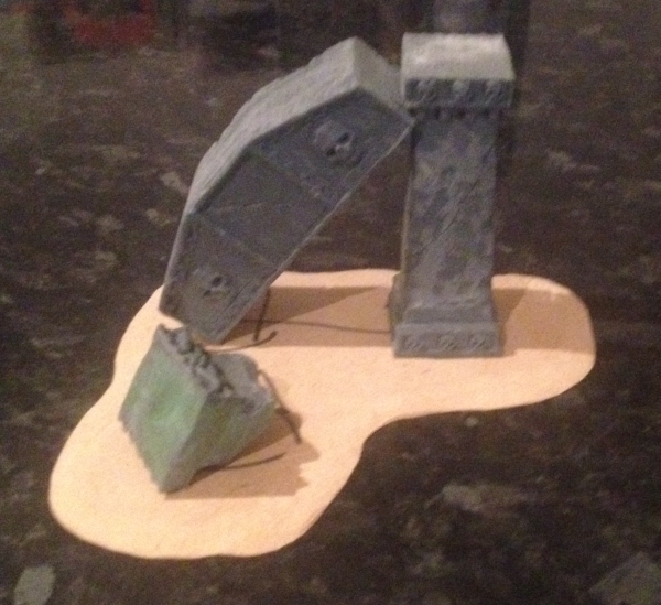 The kit has parts to make three of these two-pillar/top piece sections I decided to stretch it a bit further and make some into ruined sections. I took my time with the kit - basic clean-up and removal from the sprue was easy, but there was a good amount of gaps to fill and moldlines to sand. I used the electric multitool (not-Dremel) for a lot of this - it also gave me the chance to rough up some of the flatter sides for eventual drybrushing.